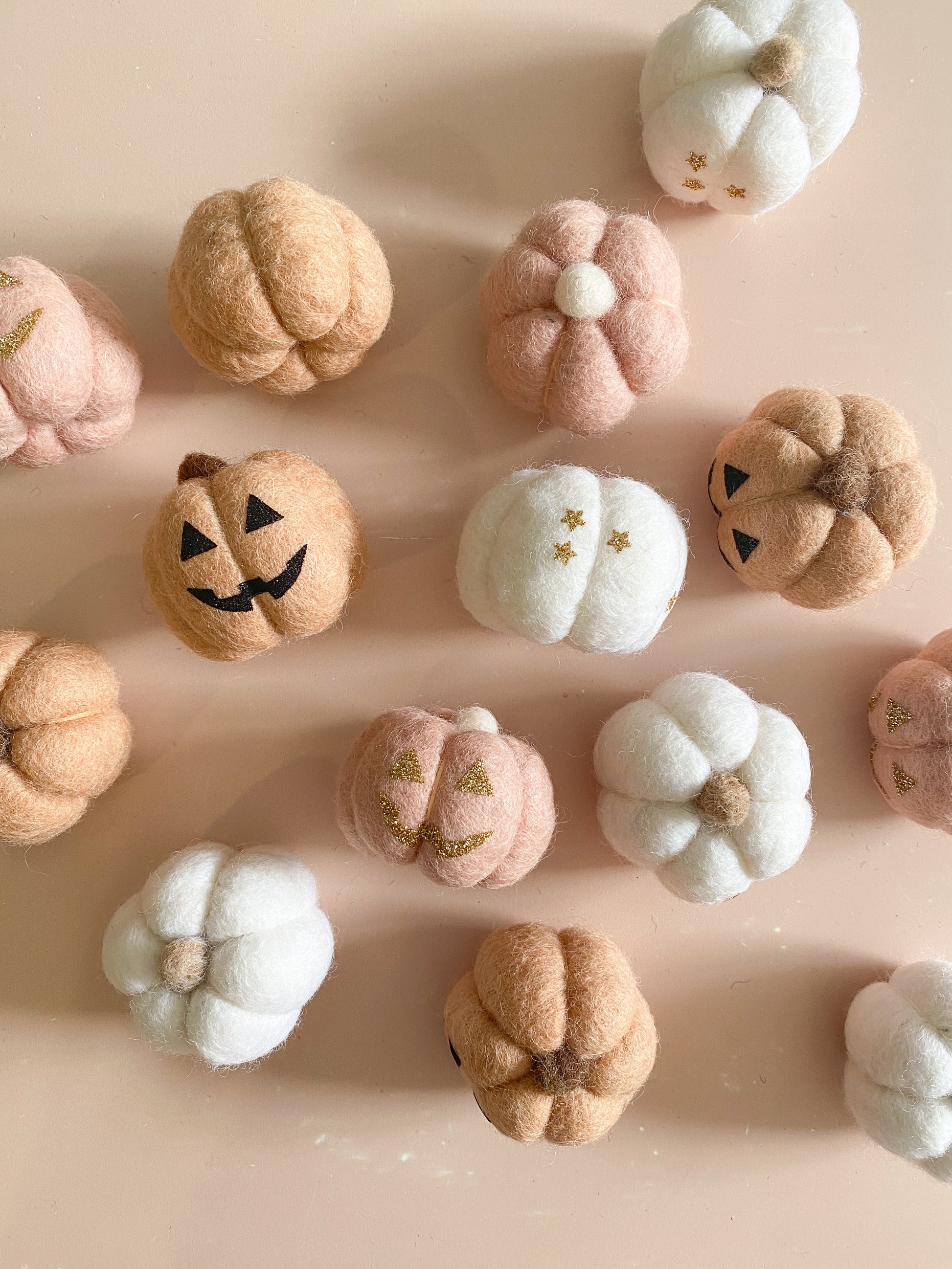 Add a cozy touch to your Halloween styling with these wool felt pumpkins.